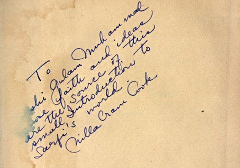Nilla Cram Cook's Kashmir connection is 'The Way of the Swan', her gem of a translation of the the works of Kashmiri mystics including the Lol's or love poems of Habba Khatoon / Zooni. This is the inscription on a copy of the book she presented to my father: