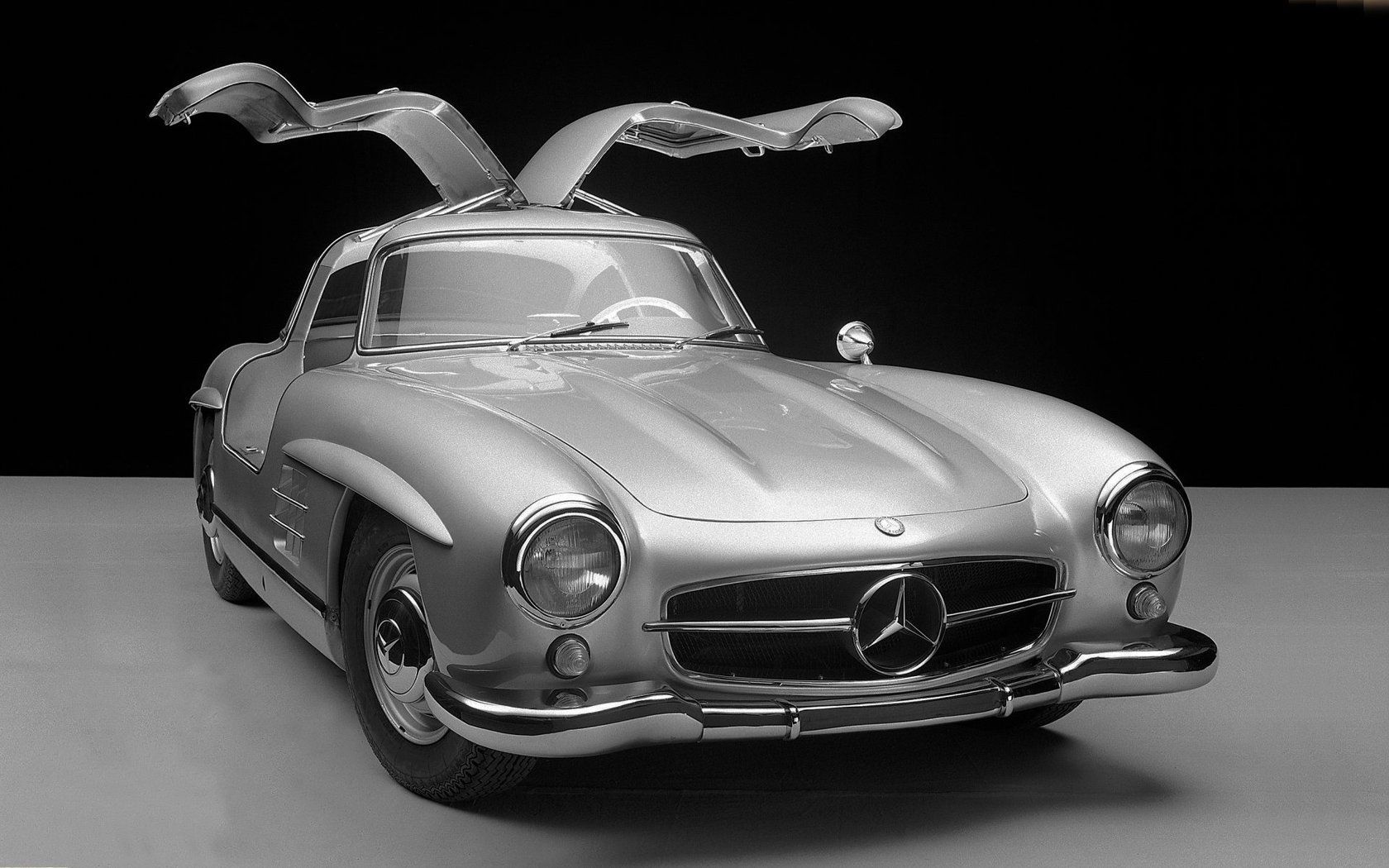 Stimulated by the current TV advert featuring Michael Schumacher and the Mercedes-Benz AMG SLS – the modern MB/AMG interpretation of the classic Mercedes-Benz 300 SL Gullwing – I put on my racing/googling overalls and after a marathon Google Image Search session, I tracked down both the images.