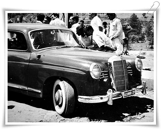 Quite a few anecdotes about my father revolve around automobiles – his fondness for touring the countryside as the Prime Minister of Kashmir in a Mercedes-Benz Ponton and driving across the frozen Dal Lake in a Land Rover. Then there is the amusing story about the cabinet minister who borrowed the Prime Minister's official car and surprised the driver by offering an exorbitant sum to replace the "motion" that broke on a steep incline!