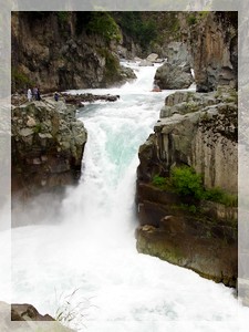 The Aharbal falls, about 60 kms from Srinagar via Shopian, lie in the gorge cut into the Pir